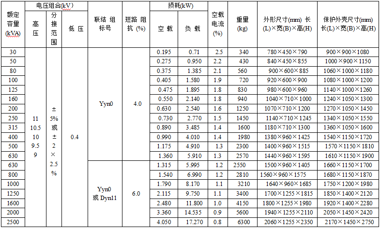 10kV級(jí)干式變壓器SCB10系列技術(shù)參數(shù)